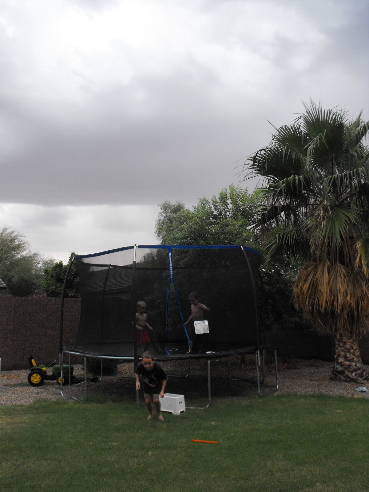 A good mom lets her kids jump on the trampoline during a monsoon! A FUN mom jumps with them! (Yes I did...I just don't have the pictures to prove it!)